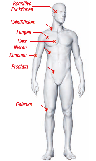 1. SALUX kann ARTERIOSKLEROSE stoppen. Es senkt den Bluthochdruck sowie das Risiko von Herzerkrankungen oder eines Infarkt. Es entfaltet seine Wirkung auf Ihre Arterienwände, um sie glatter und geschmeidiger zu machen. Atheromatöse Plaques lösen sich nach und nach von selbst von den Gefäßwänden, Bluthochdruck wird reduziert und das Risiko von Herz-Kreislauf- Erkrankungen wird gesenkt. 2. SALUX stärkt die Synapsen des Nervensystems und schützt somit vor Gedächtnisstörungen. Es kann inaktive oder degenerierte Synapsen in Ihrem kortikalen Gedächtnis wieder aufbauen, um ein eingeschränktes Erinnerungsvermögen wieder zu stärken oder vergessene Gedanken wiederkommen zu lassen. 3. SALUX kann auch Übergewicht abbauen. Es wirkt wie ein dynamischer Nahrungsmittelselektor. Es filtert alle Nahrungsmittel sorgfältig aus, die Sie zu sich nehmen, und kennzeichnet nur die Nährstoffe als „assimilierbar“, die Ihr Körper wirklich benötigt. Der ganze Rest wird auf natürliche Weise ausgeschieden, ohne vom Körper aufgenommen zu werden. 4. SALUX hilft bei Hautproblemen, wie Flecken, Unreinheiten, Ekzeme, Schuppenflechte, Zysten. Es setzt subkutan einen biologisch abbaubaren Inhaltsstoff frei, der die Haut von Giftstoffen befreit. Dieser Inhaltsstoff wirkt auch gegen gesundheitsschädliche Abfallstoffe, die der Körper aufgrund eines ungesunden Lebensstils nicht ausscheidet. Krankheitserreger werden aufgespürt und in die Wirkstoffe von SALU X eingeschlossen. 5. SALUX regeneriert das Gefässsystem und ist hochwirksam gegen Krampfadern, Geschwüre und Venenentzündung. Es kräftigt die salzhaltigen Verbindungen des Hämoglobins, damit es den Sauerstoff effektiver transportieren und den Durchmesser der roten Blutkörperchen erhöhen kann. 6. SALUX bietet die definitive Behandlung der Gelenke. Es sorgt für eine sofortige Eindämmung der Entzündungen in allen Bereichen der Gelenke. Es bekämpft alle degenerativen Funktionsstörungen- wie Arthritis, Rheuma, Entzündungen und Gicht- indem es den Körper mit Mineralstoffen und Spurenelementen versorgt, die absolut notwendig sind.